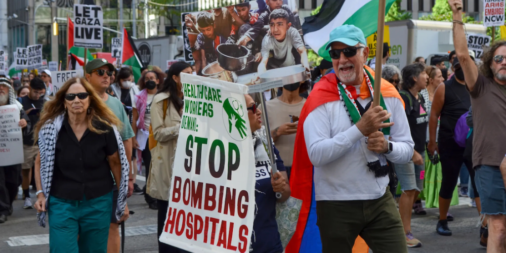 Protest organizers argued that ongoing American assistance must be reevaluated in light of famine conditions, widespread displacement, and mounting death tolls estimated in the tens of thousands.