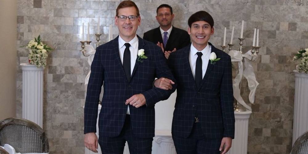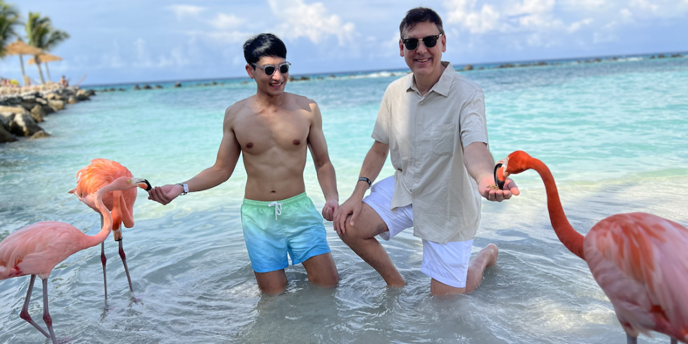 With a U.S. green card or passport, Jonathan can travel freely to visit family in Bangkok – or holiday with his husband in Aruba. Photo courtesy of the couple.