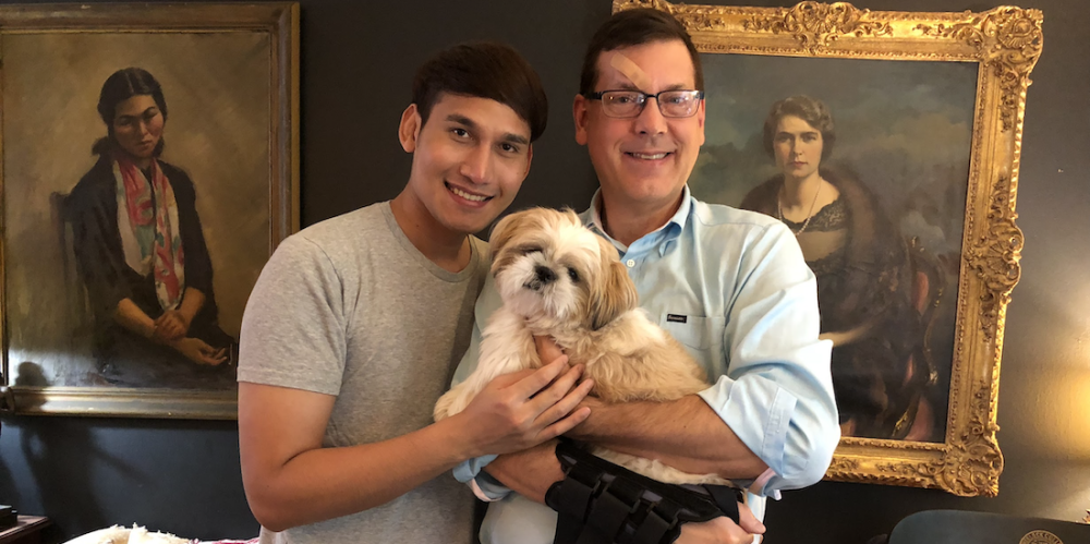 Matthew Collin Marrero, Allan Michael Dabrio Marrero and their family dogs. Photo courtesy of Matthew Collin Marrero.