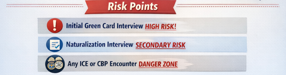 Third, understand the risks before the green card interview. If your spouse has any history of visa overstays, unauthorized work, or previous deportation orders, those issues could surface during the interview. An immigration lawyer can assess whether it’s safer to wait, whether you qualify for any waivers, or whether you should consider processing the application through a U.S. consulate abroad instead.